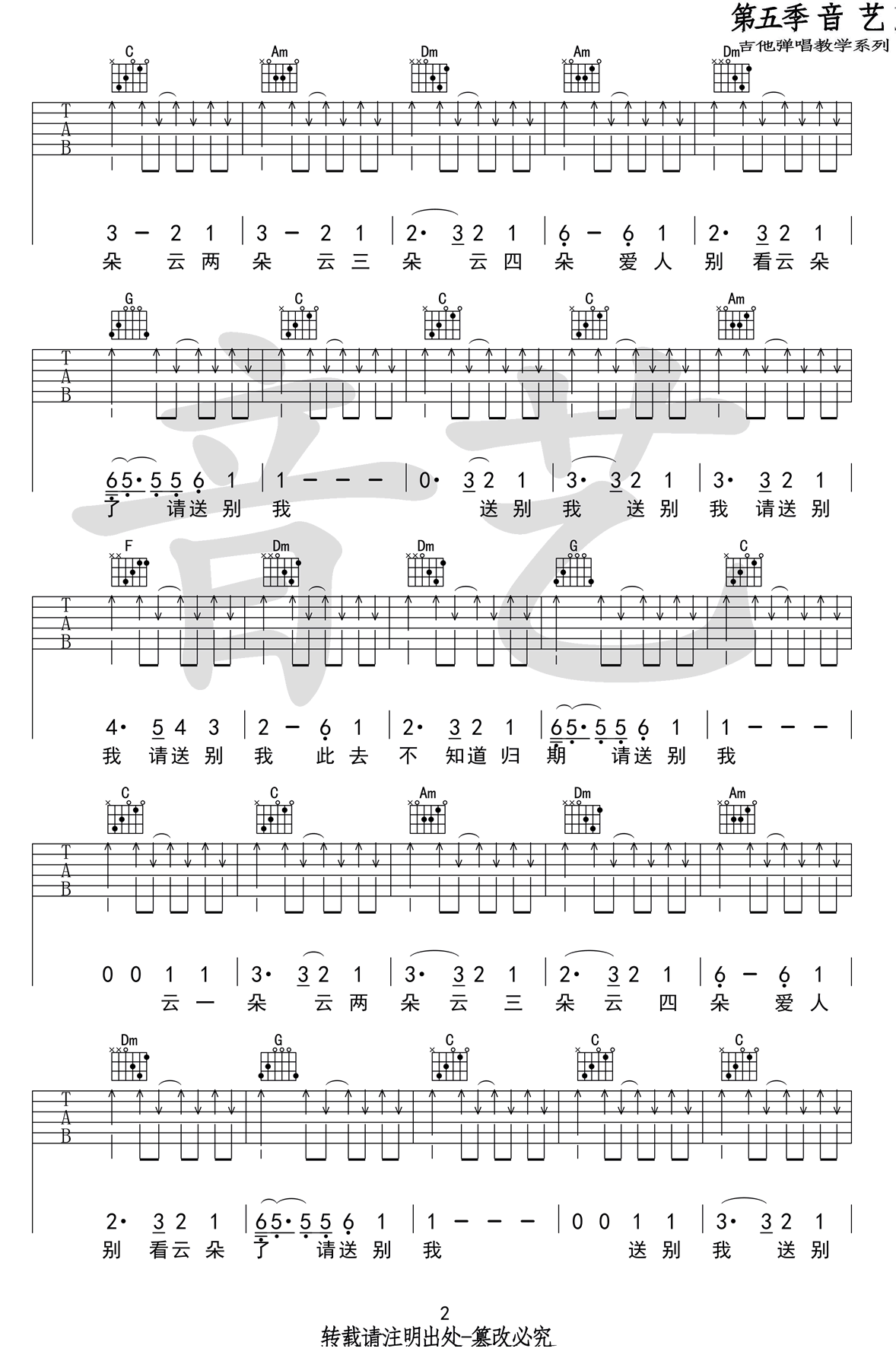 别送我吉他谱,陈鸿宇领衔演唱,韩寒电影《乘风破浪》插曲,这首歌曲改编自经典民谣《500miles》,暖心的歌声化解彼此内心的孤独,带给我们前行的力量。别送我吉他六线谱,高清弹唱谱三张图片,歌曲原调E,变调夹夹四品,采用C调指法编配。感谢演员吉他编配。